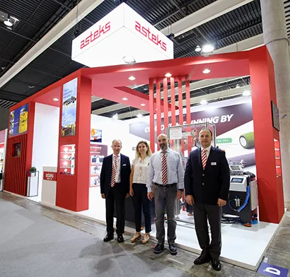 20-26 Haziran tarihleri arasında, tekstil endüstrisinin en önemli ve prestijli fuarı ITMA 2019’a katılan ASTEKS, küresel tekstil üretim pazarının önemli lokasyonlarından gelen ziyaretçilere geliştirdiği son rektefiye çözümlerini sundu. Fuarda iplik eğirme teknolojilerine ayrılan Salon 7’de kurumsal kırmızı renginin hakim olduğu stantı ile yerini alan ASTEKS ziyaretçilerden büyük ilgi gördü. Firma 3 ana kategoride çözümlerini ziyaretçilere hem birebir ürünleri ile sergiledi hem de detaylı olarak anlattı; zengin apron ve manşon ürün gamından yeni ürünler, otomasyon kabiliyeti yüksek 201-SF manşon rektefiye makinesi ve 101-AGV taşıma aracı. Fuara üst düzeyde bir katılım sağlayan ASTEKS; Genel Müdür Emre Akman, Pazarlama ve Satış Müdürü Sabri İlknur, Yurtdışı Satış Sorumlusu Taner Engin ve İhracat & İthalat Yetkilisi Aynur Güler tarafından temsil edildi.
